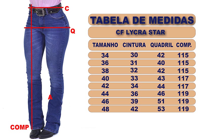 Aposte no charme e atitude da Calça Jeans Feminina Radade CF Lycra Delavê Silver Stars. Produzida em jeans de alta qualidade (83% algodão, 15% poliéster e 2% elastano), garante conforto, ajuste ao corpo e durabilidade. Com lavagem hiperdestroyed delavê amaciada, possui cintura alta, modelagem flare e bolsos funcionais frontais e traseiros. Os apliques de pedras e brilhos na parte frontal adicionam um toque sofisticado e feminino, perfeito para quem quer brilhar com autenticidade no estilo western.